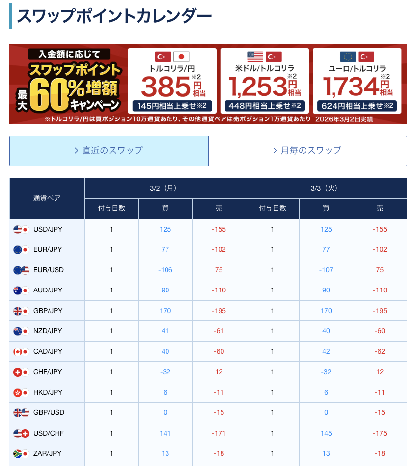 短期トレーダーだけでなく、スワップ狙いの中長期トレーダーにとっても魅力的なポイントがあります。